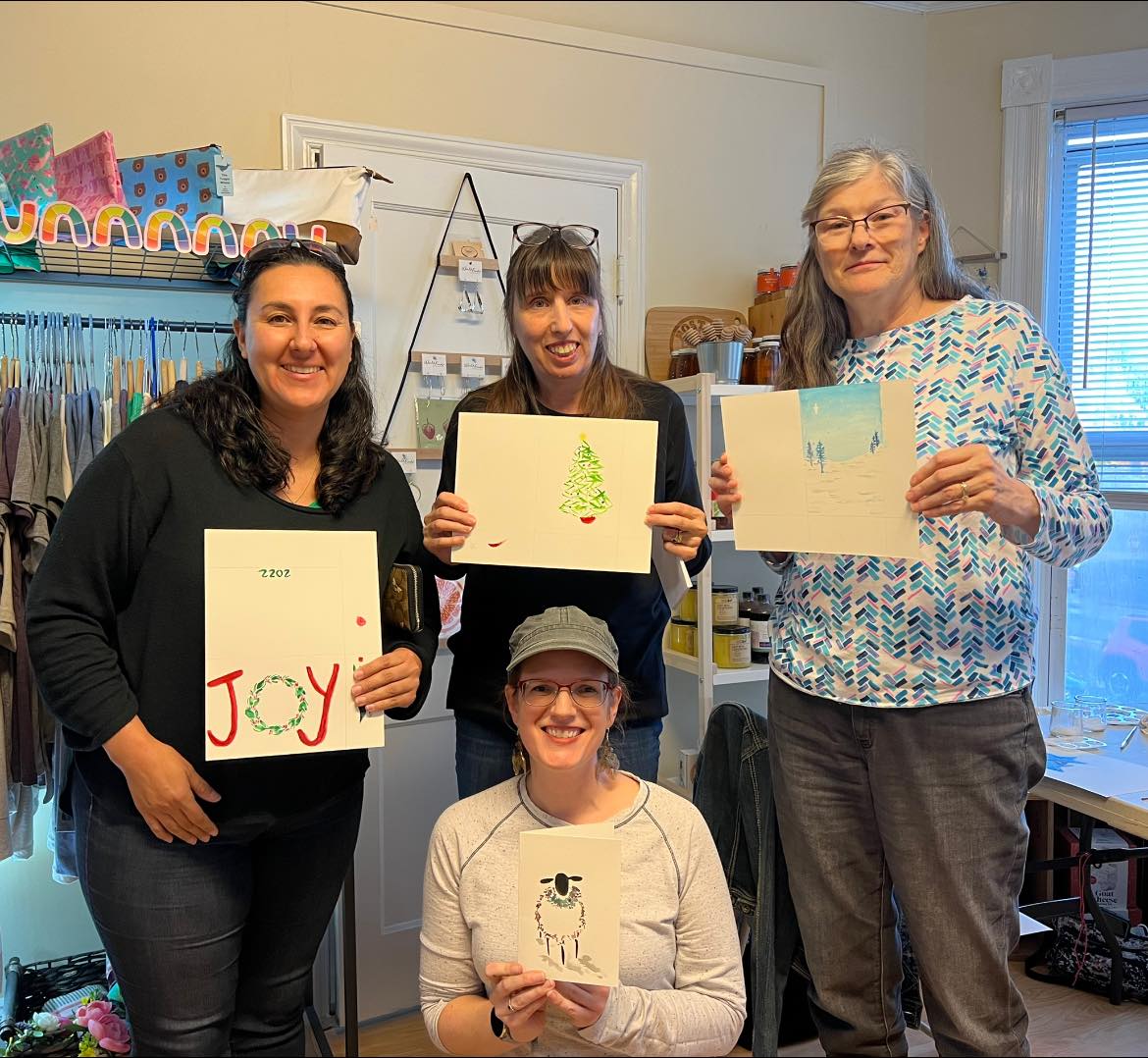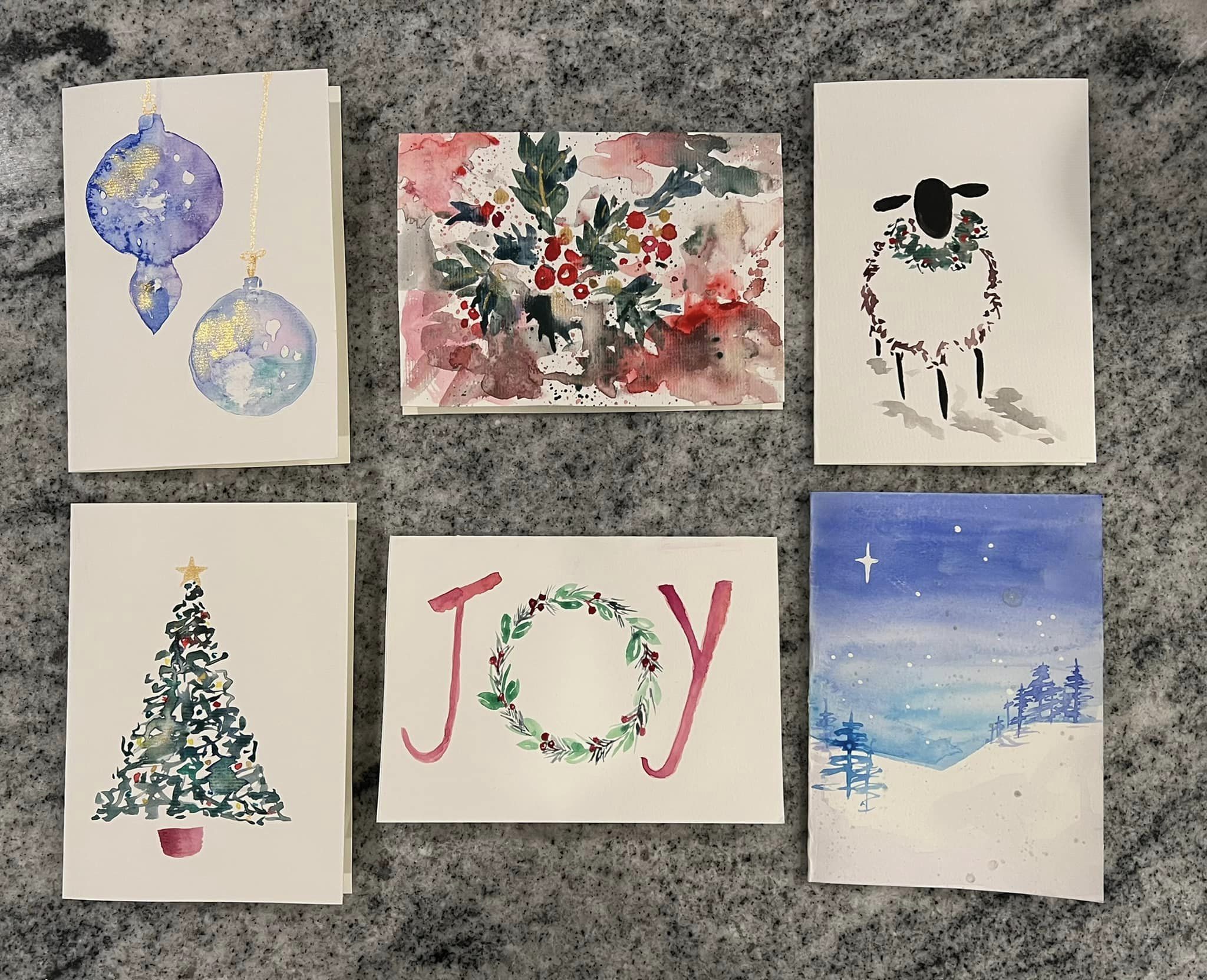 Introduction to Watercolor – Holiday Cards, Burncoat Center for Arts and Wellness, Worcester MA, December 2022 (pictured above)