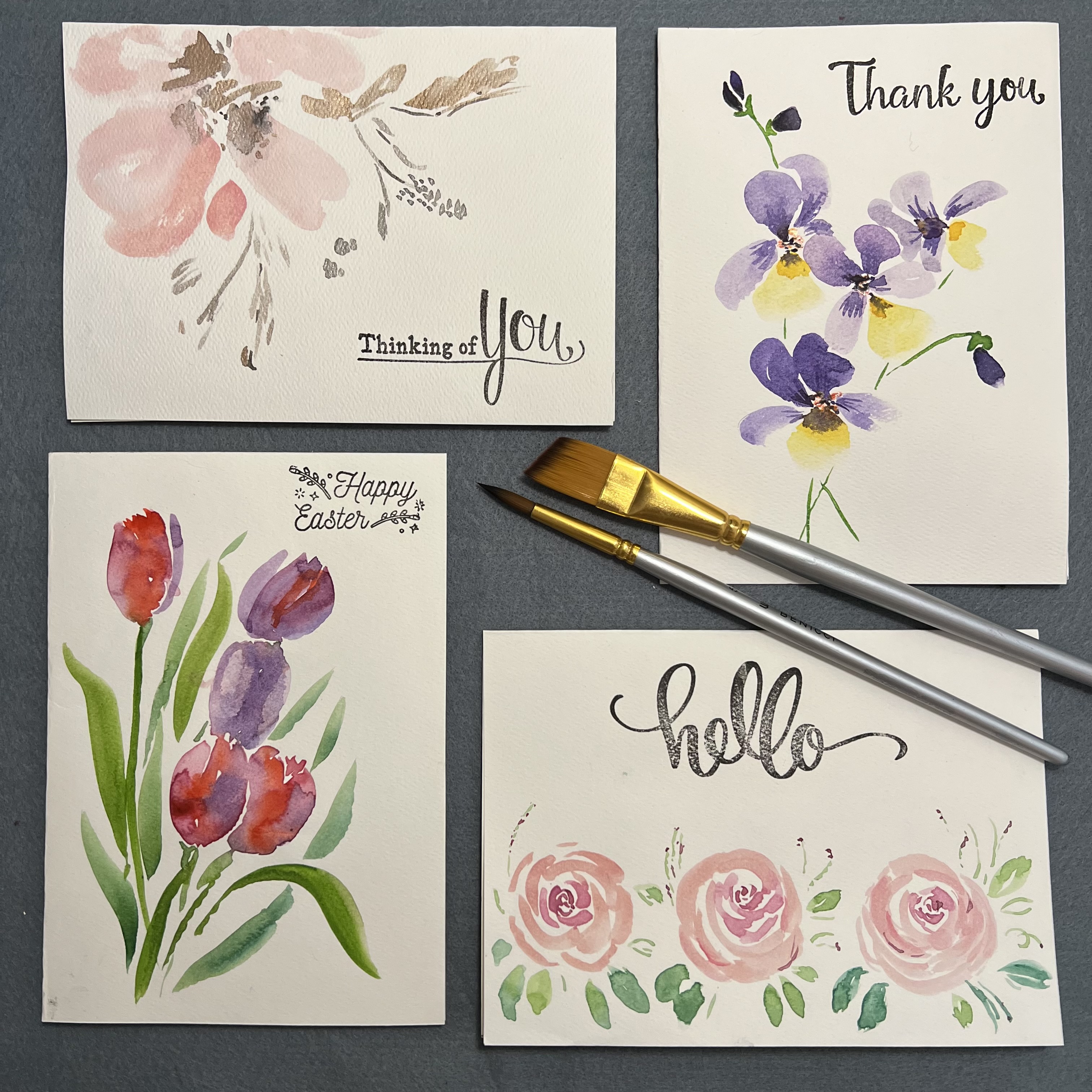 Watercolor Floral Cards, New England Botanical Garden at Tower Hill, April 23rd 2023 9:30-11:30 am (pictured above)