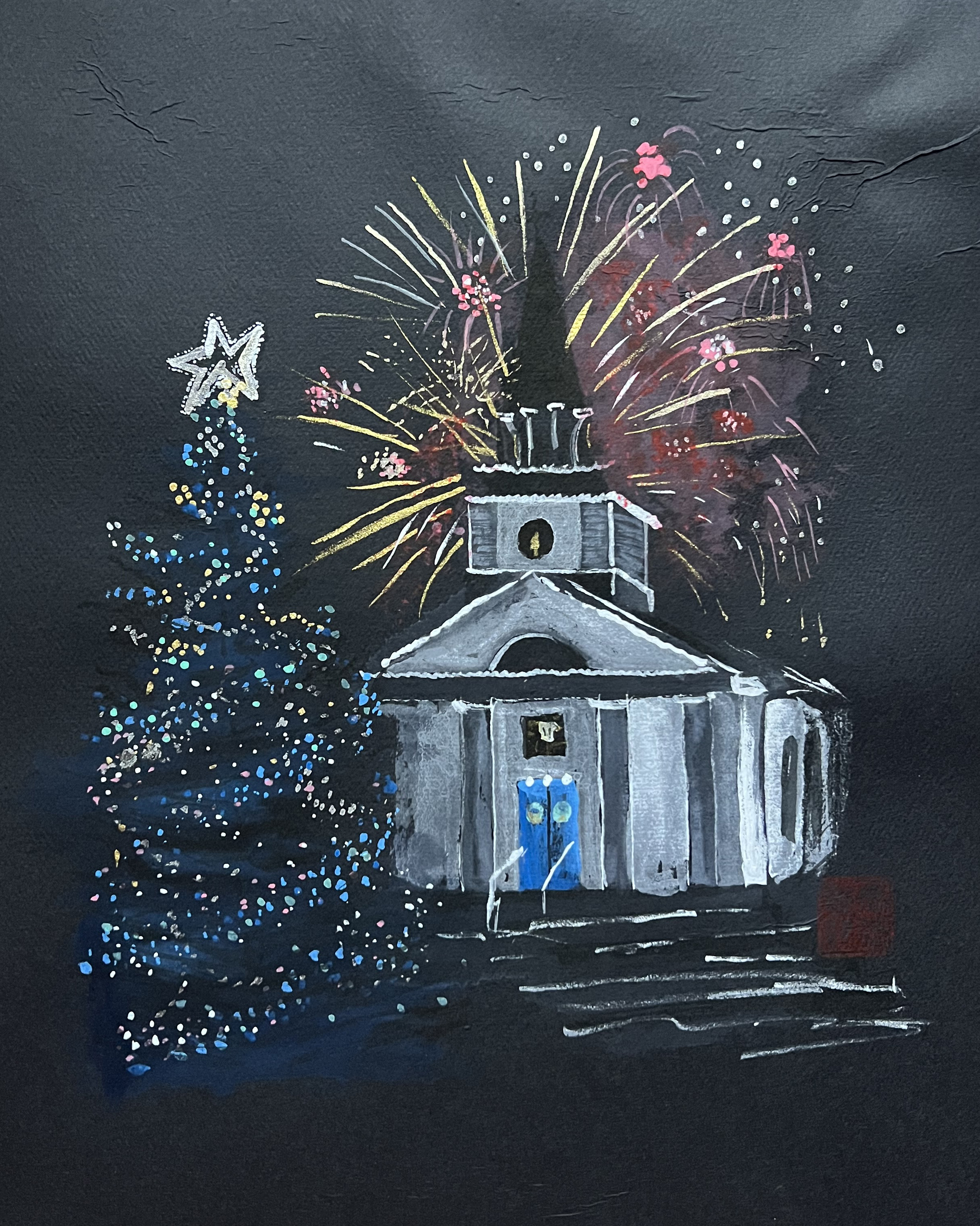 painted from images at the 2021 Christmas fireworks, AltaVista Farm, and Lilac Hedge Farm